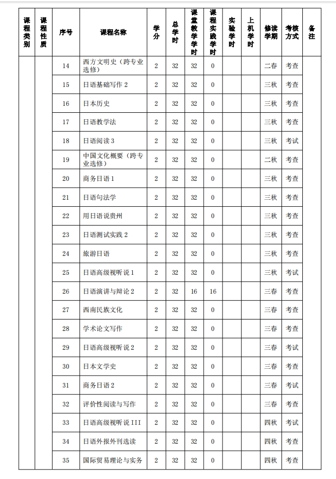 日语专业课程设置