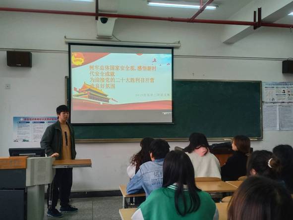 在校团委和学院党委的领导下,我院团委组织开展了喜迎二十大、永远跟党走、奋进新征程主题团日活动,并以415日我国第七个全民国家安全教育日为契机,紧扣“树牢总体国家安全观,感悟新时代国家安全成就,为迎接党的二十大胜利召开营造良好氛围”活动主题,深入开展了2022年国家安全教育日普法宣讲活动,引导广大团员青年树立国家安全观。