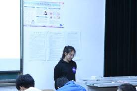 本次会议分为两个部分。首先是由2018级的何开楚、刘鉴宽、朱兴龙介绍其在四六级考试中的感受、应考策略及复习方法,同学们都专心聆听着,听到适合自己的方法,还有同学认真记下笔记;第二部分就是大四任云芳同学的海外留学经历分享,鼓励在座同学应该好好学习,才会有深造学习、扩宽眼界的机会。最终会议以一个提问环节画上了完美的句号。