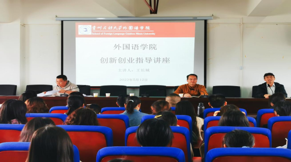 王长城主任用幽默风趣的言语吸引了在场老师和同学的注意力,活跃了讲座的氛围。王主任还通过我院学子在三都县建立“酸-博物馆”以及遵义市刘胡子食品等事例向同学们就项目的筛选以及创新创业的逻辑等进行讲解。讲授旁征博引,生动有趣,进一步激发了广大师生对创新创业的兴趣和热情。