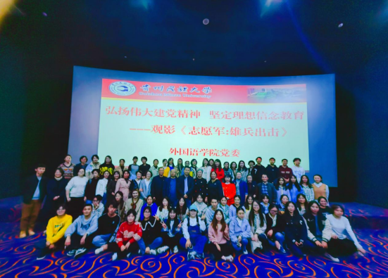 为深入学习贯彻习近平新时代中国特色社会主义思想和党的二十大精神,弘扬伟大建党精神,引导党员同志和青年学生坚定理想信念,弘扬爱国主义精神20231027,我院党委花溪万宜广场中影南方影城组织开展《志愿军:雄兵出击》主题观影活动。全体党员、发展对象、积极分子参加了活动。