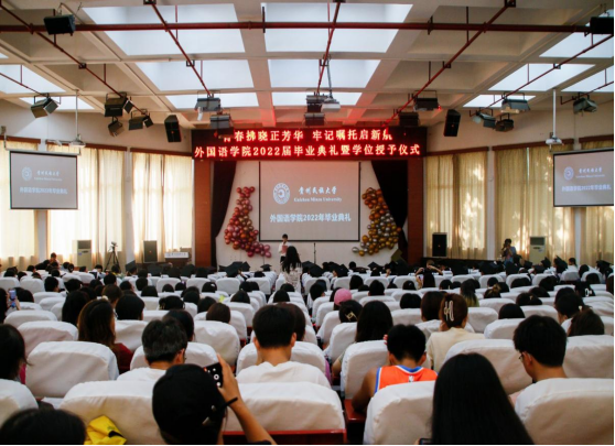 6月22日,开云app官方在线入口在花溪校区15号综合教学楼圆形会议中心举行2022届毕业典礼暨学位授予仪式。党委副书记刘兴明,院长肖唐金,副院长禄颖、张广勇出席。学院全体教师、2022届全体毕业生及全体在校学生参加。