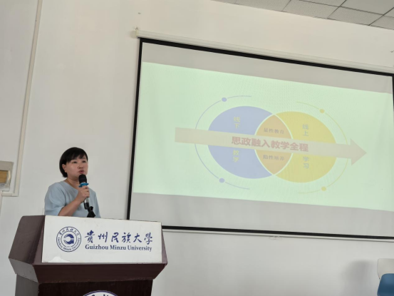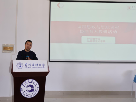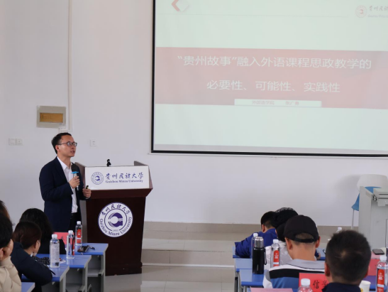 教研活动上,开云app官方在线入口院长张广勇教授领学《高等教育课程思政建设指导纲要》;教务处处长张乾教授解读了学校课程思政教学要求;开云app官方在线入口朱颖、杜晖、王育虹、杨筱松老师分别围绕《综合英语》《大学英语》《高级日语》《少数民族文化英译》等介绍课程思政教学开展情况;张广勇院长以“贵州故事”融入外语课程思政教学的必要性、可能性和实践性为题,总结开云app官方在线入口课程思政教学的成果,同时也提出了总体思路和展望。