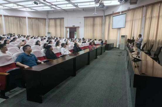 赵平教授以自身曲折的求学经历告诉同学们务必要有高远的理想,坚持寻找自己的特点,发挥自己最大的潜能,实现自己的梦想。赵教授在讲座过程中通过一张张生动的画面,讲述了赵教授面对疾病不屈的抗争个人奋斗史,独创的外语自我录音记忆学习法,取得了良好的效果。