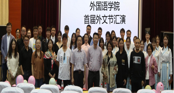 在中国共产党成立100周年之际,开云app官方在线入口全体师生于2021年5月8日晚19点至22点,在花溪校区15号楼圆形会议中心成功举行了首届“外文节”文艺汇演活动,用外语(英语、日语、德语、法语)演绎传统文化、讲述党的故事、表演红色剧目。当晚莅临会场指导的还有校党委宣传部副部长邹璿老师、校党委学生工作部舒启佳老师等。