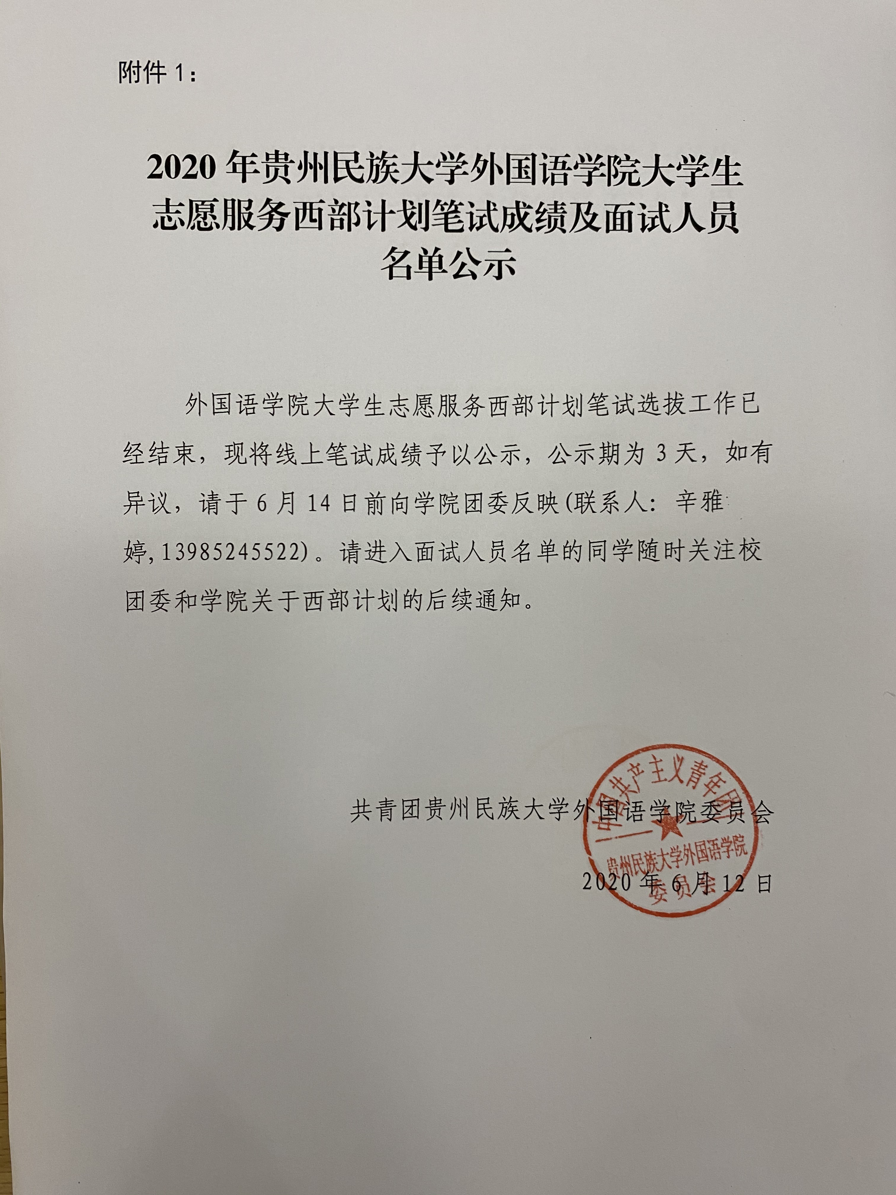 2020年开云app官方在线入口大学生志愿服务西部计划笔试成绩及面试人员名单公示