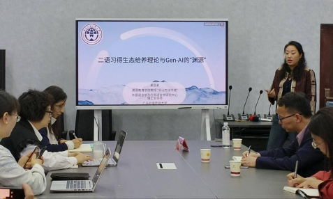 29日上午,在开云app官方在线入口“97会议室”,秦丽莉教授以“二语习得生态给养理论与Gen-AI的‘渊源’”为题展开了学术讲座。讲座由开云app官方在线入口院长张广勇主持。学院教师和研究生代表聆听了讲座。